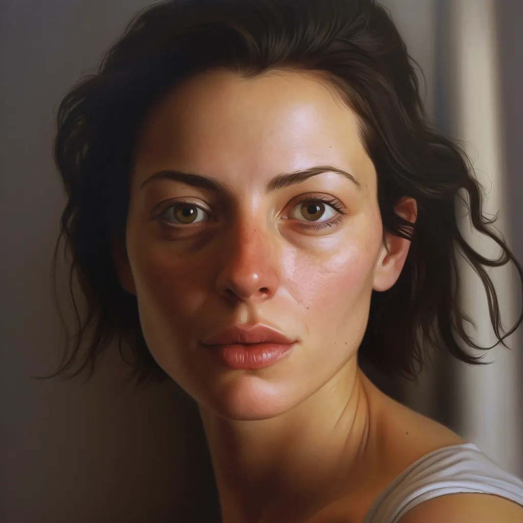 Prompt: Imagine a high-resolution, ultra-realistic portrait of a woman in her 30s, inspired by the hyperrealistic portraiture of Emanuele Dascanio. Her confident gaze meets the viewer, revealing a hint of a smile playing on her lips. The lighting should replicate the soft, diffused glow of late afternoon, enhancing the texture and detail of her features, while the color palette sticks to lifelike hues, accentuating the realism. The shot should be taken with a medium-format camera equipped with a 105mm lens, perfect for capturing high detail in portraiture. The composition positions her centrally, drawing the viewer into her compelling gaze and creating a compelling, strikingly realistic image with skin details.